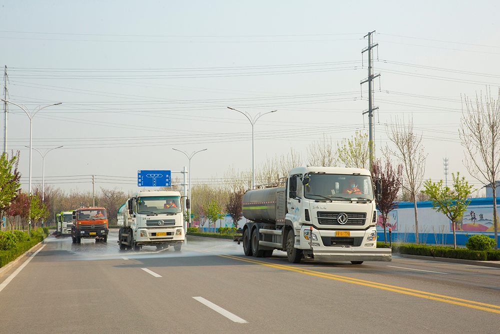 掃路車(chē)與高壓沖洗車(chē)、灑水車(chē)進(jìn)行聯(lián)合深度保潔